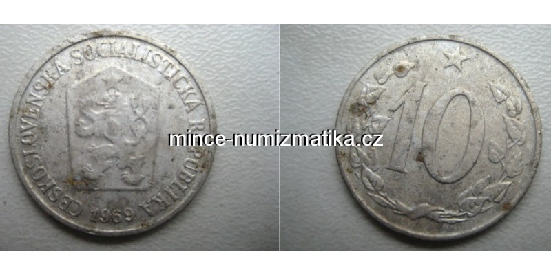 10 haléř 1969 Pootočená chyboražba avers a revers asi o 5°
