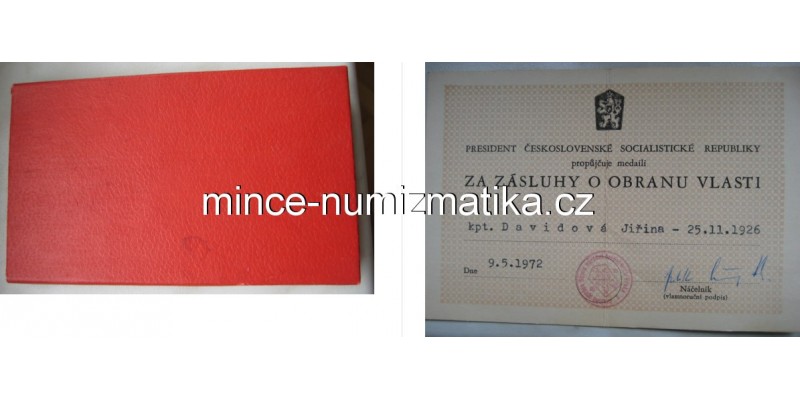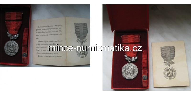 Medaile AR - Medaile ČSSR za zásluhy o obranu vlasti AG v původní etui s miniaturou a dekretem rok 1972