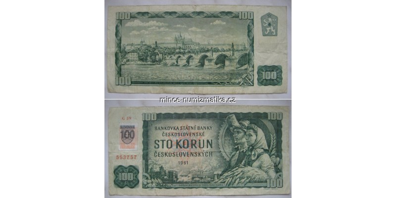 100 Korun 1961 serie G - bankovka s kolkem Slovenská republika